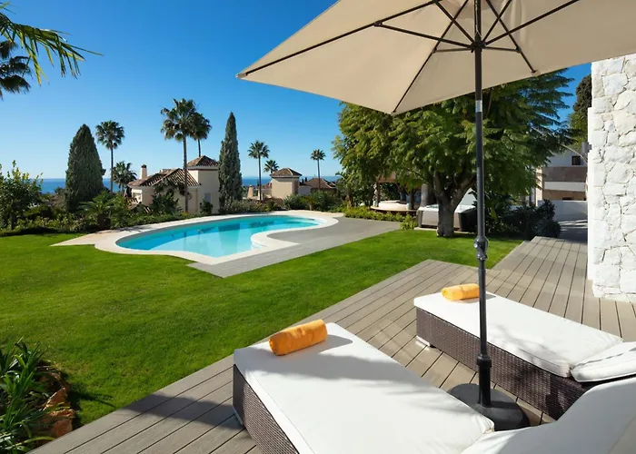 Absolute High End Villa Near Beach With Jacuzzi! dysponuje słonecznym patio z widokiem na basen, 43 min jazdy od lotniska Malaga. Willa oferuje gościom relaksujące doświadczenie z jacuzzi.
